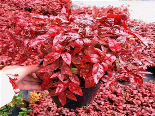 火焰南天竹屬常綠灌木,性喜溫暖及濕潤的環(huán)境,比較耐陰耐寒,容易養(yǎng)護(hù),它的莖干成叢生長,葉片四季不落,其春夏秋葉色為翠綠色,冬季葉片變?yōu)榛鸺t色,紅葉期大約4個月,9月下旬開始漸漸變紅,12月中旬至2月上旬葉色鮮紅艷麗,到4月下旬逐漸轉(zhuǎn)淡變綠。