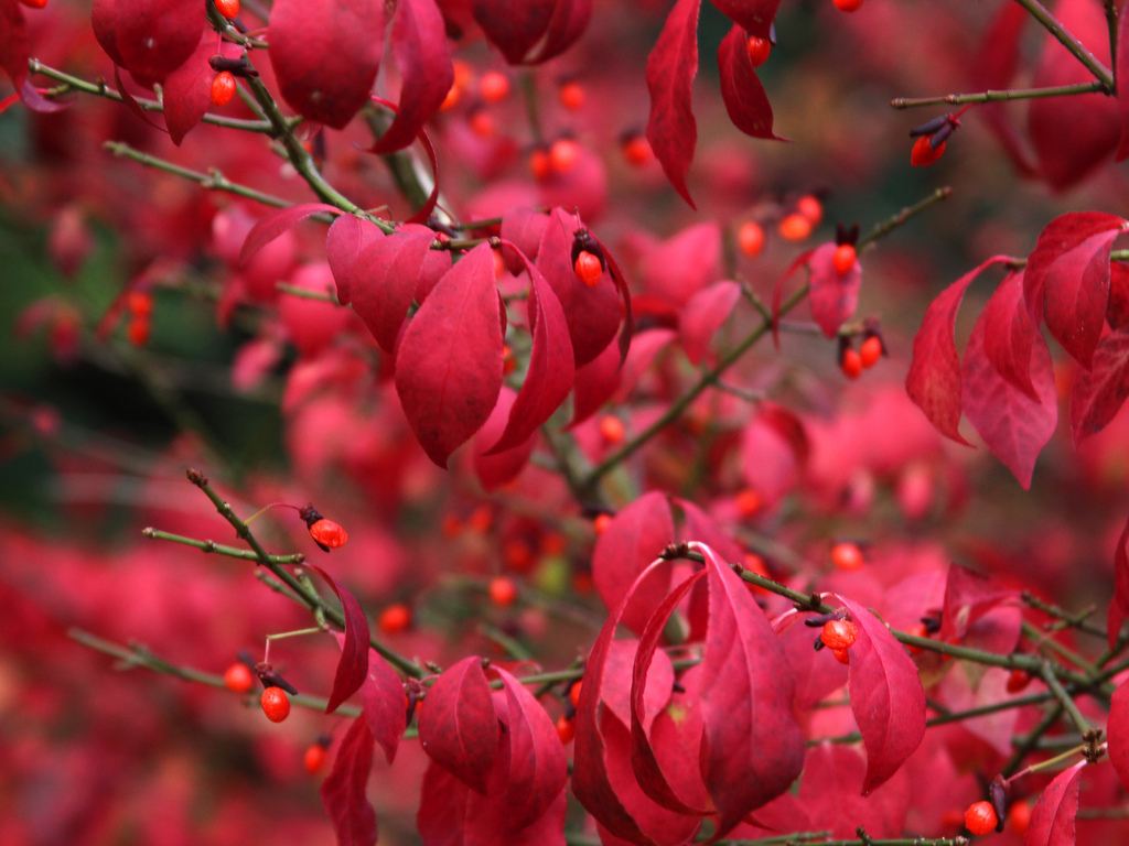 火焰衛(wèi)矛作為背景植物栽種,或2至3株成堆栽植,或單株孤植,有的旁邊配以綠色或金色的低矮松柏類植物,或是一些闊葉的小灌木,不同色彩、不同種類的植物相互搭配,既豐富了種類,符合生物多樣性的需求,又可打破木本植物相對單調(diào)的色彩。