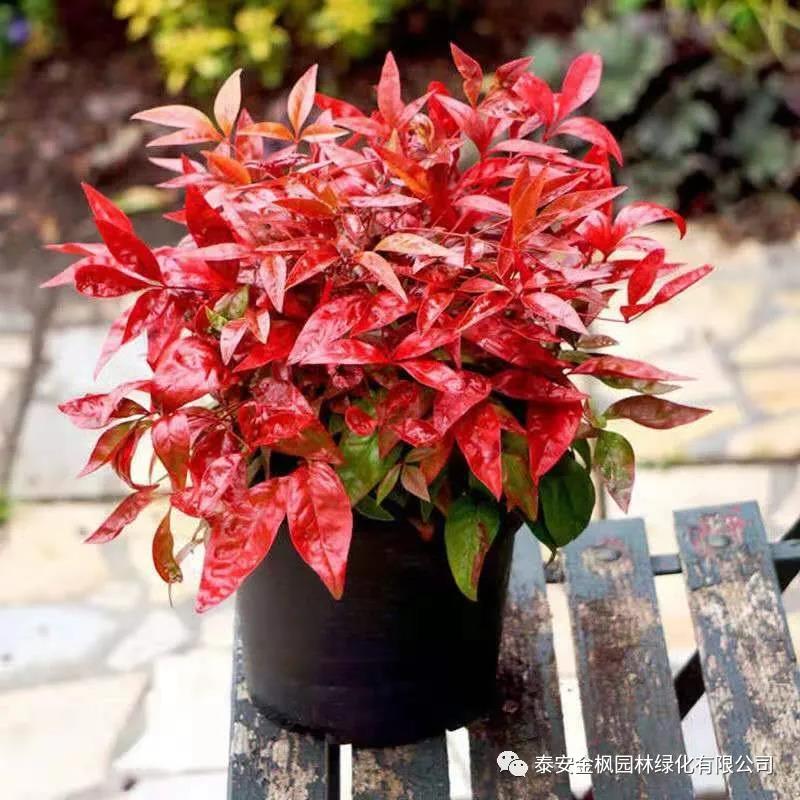 火焰南天竹為南天竹新品種?;鹧婺咸熘袷且环N優(yōu)良的彩葉植物、常綠小灌木。該植物高可達40厘米,葉片卵形、長卵形或卵狀長橢圓形,入冬呈紅色,總葉柄較。它喜光耐陰,喜溫暖濕潤的氣候。12月中下旬當氣溫低于5攝氏度持續(xù)一周時,葉片開始變紅,經(jīng)霜不落,可持續(xù)到來年3-4月,葉色艷麗。